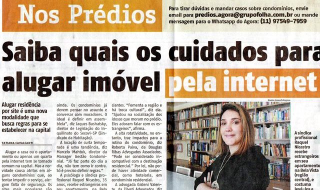 Marcelo Mahtuk fala sobre cuidados na hora de alugar imóveis pela internet e aplicativos em matéria ao Jornal Agora São Paulo.