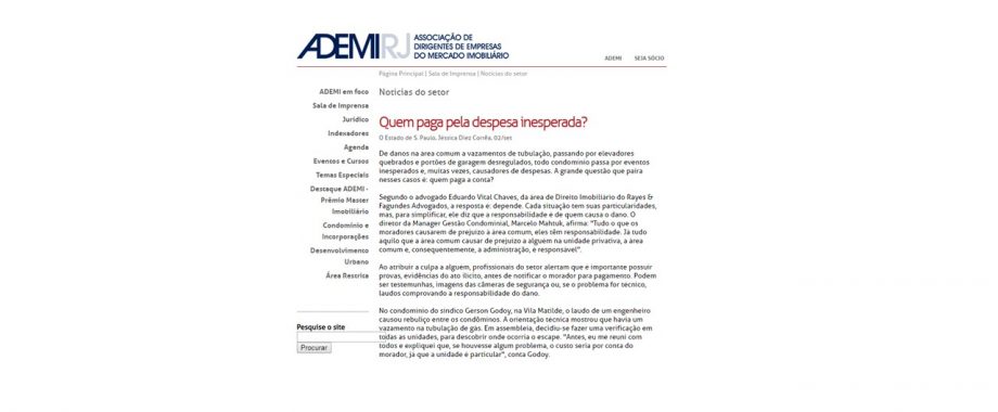 De danos na área comum a vazamentos de tubulação, Mahtuk fala sobre despesas inesperadas em condomínios na Revista ADEMI RJ. http://www.ademi.org.br/article.php3?id_article=76233