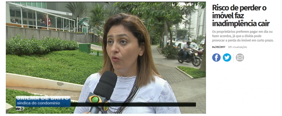 Em matéria para o Jornal da Band, síndicos falam sobre inadimplência e proprietários que fazem acordos e melhoram o pagamento para não perder o seu imóvel. https://noticias.band.uol.com.br/jornaldaband/videos/16208314/risco-de-perder-o-imovel-faz-inadimplencia-cair.html